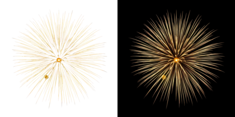 Golden pyrotechnic explosion with vibrant yellow glow, glittering spark trails, and warm halo bloom perfect for celebration backgrounds, New Year scenes, and decorative vector effects