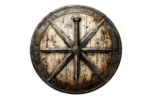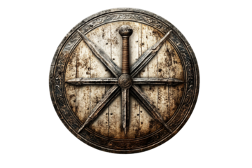 Detailed hand drawn Spartan shield artwork isolated on transparent background