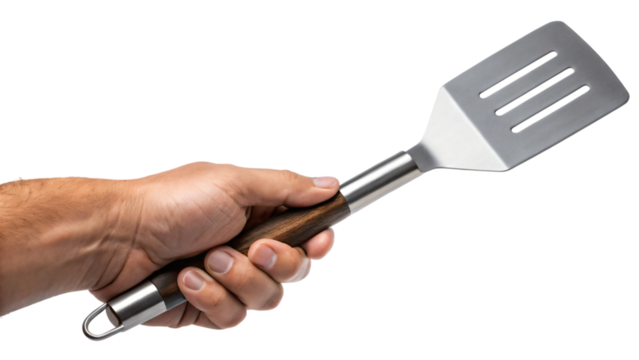 Sizzle and Serve with Precision Using the Right spatula on a White or Clear Surface PNG Transparent Background.