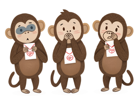 Cute Monkeys Receiving Valentine Letters, Speak No Evil