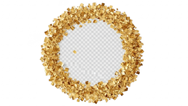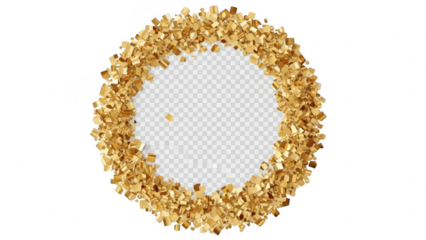 Gold glitter ring with scattered confetti on transparent background for celebration and special event decoration
