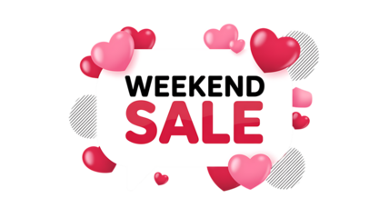 Weekend Sale Message in Speech Bubble Surrounded by Pink Hearts discount promotion Sale Promotion Speech Bubble and Banner Icon Set – Special Offer, Big Sale, Discount Labels”