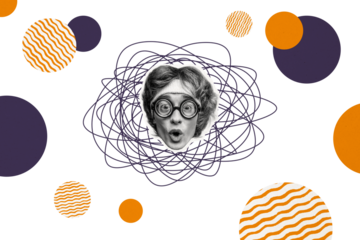Composite photo collage of astonished surprised young man wear glasses scientist doctor specialist isolated on painted background