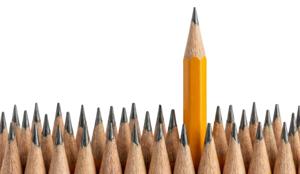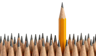 Yellow Pencil Standing Out From Many Sharpened Pencils