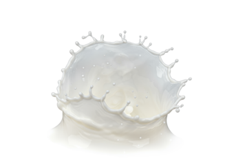 spectacular eruption of ultra-transparent milk, frozen mid-air as a hyper-detailed crown splash of droplets and creamy mist against a transparent studio backdrop. Concept of volatile fluid dynamics