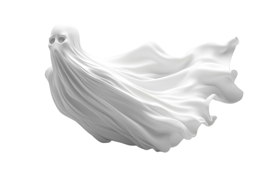 A white draped form with folds, resembling a ghost or spectral figure, isolated