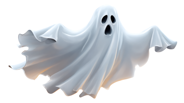 Ghost skull spirit with flowing white spectral shroud representing fear horror and supernatural mystery on transparent background
