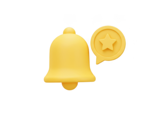 Yellow bell with star notification bubble isolated on transparent background