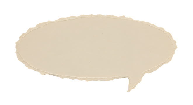 Beige torn paper speech bubble frame a versatile graphic element on transparent background.