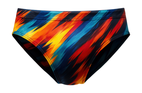 Colorful Geometric Pattern Swim Trunks Isolated on Transparent Background PNG Summer Beach Fashion Apparel