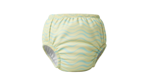 Isolated child's yellow swimming diaper for baby, cloth swim brief, light and absorbent