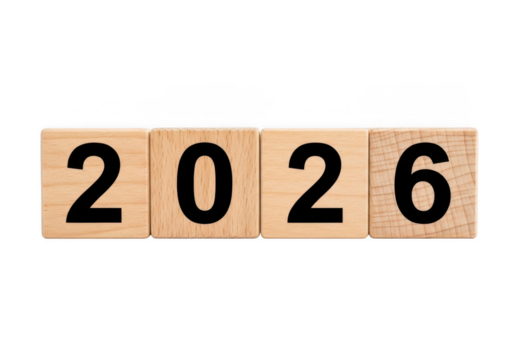 The year 2026 spelled out with twigs and branches isolated on transparent background