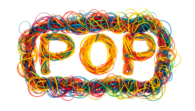 POP" spelled out in 3D using coiled, black electrical cables against black