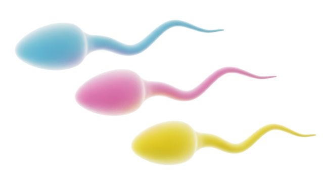 Colorful sperm cells PNG isolated on transparent background, blue pink and yellow gametes for fertility and reproductive health concepts