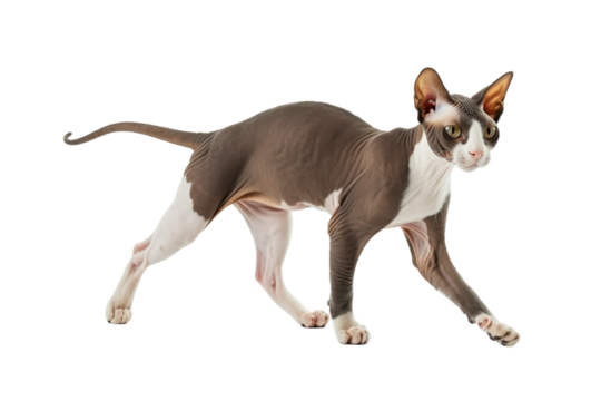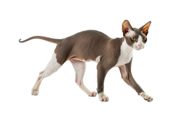 A curious Sphynx cat with its unique hairless appearance, isolated on a empty plain background