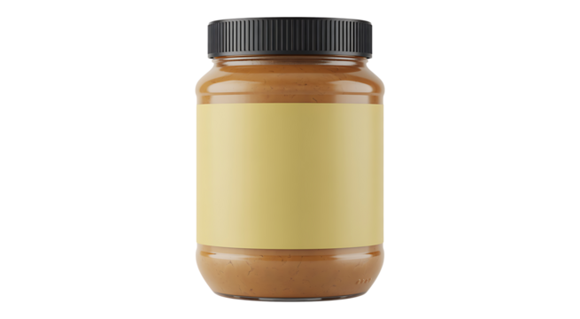 Glass jar filled with homemade organic granola, isolated on a transparent background