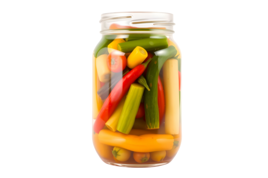 Pickled vegetables in glass jar isolated on transparent background