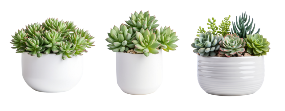 Set of lush succulent in a white pot with a white and transparent background that is extremely realistic and detailed. crop image use.