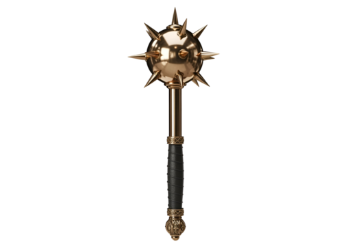 Medieval spiked mace weapon rendered for fantasy games or historical reenactment isolated on transparent background