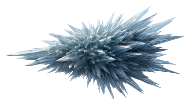 Ice crystal formation with sharp spikes and cold blue hues, perfect for winter and abstract concepts on transparent background