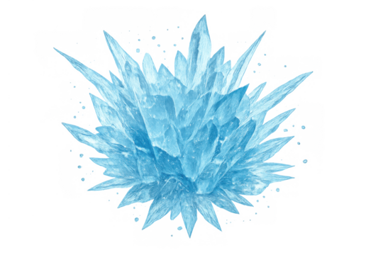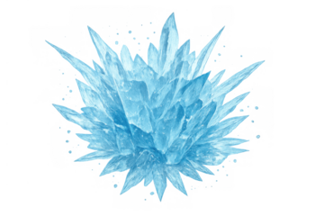 Blue ice crystal formation with sharp, spiky edges creating a burst effect. Transparent background for easy layering