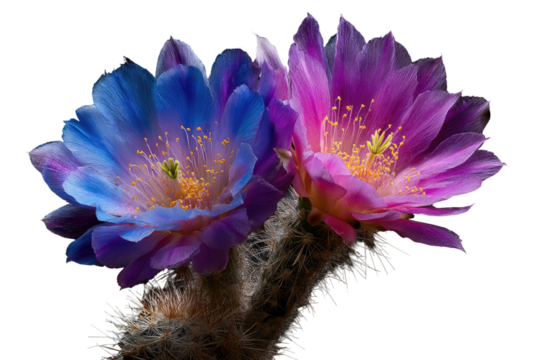 Close-up of a purple thistle flower with spiky leaves, isolated on a transparent background, showcasing its vibrant color and intricate details