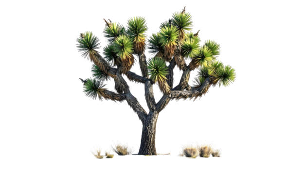 Isolated image of a Yucca plant with long, spiky green leaves against a transparent background. background removed