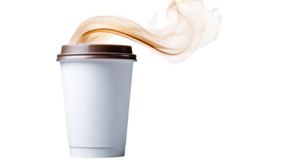 White coffee cup with spilled coffee on black white cup brown liquid isolated on a transparent background
