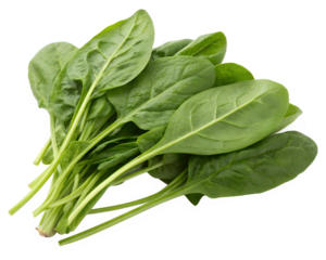 Fresh green spinach leaves isolated on a white transparent background, high-quality cutout, perfect for food design, nutrition, healthy eating, and vegetarian meal concepts