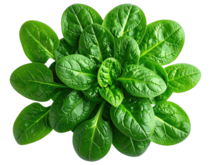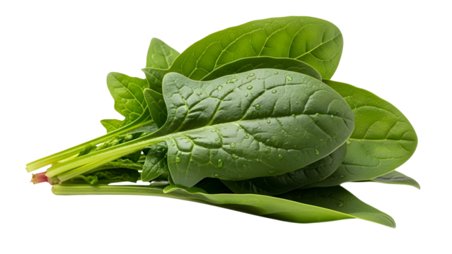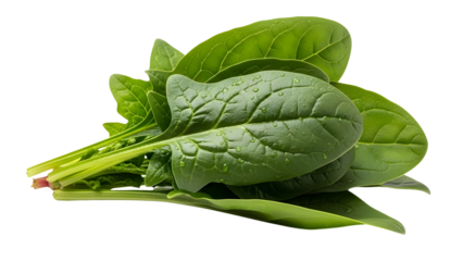 Close-up of vibrant, fresh green spinach leaves isolated on a transparent background
