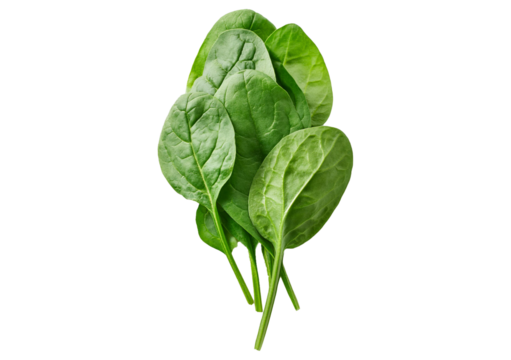 Green spinach leaf isolated on transparent background. Perfect for healthy food, cooking, and vegan design.