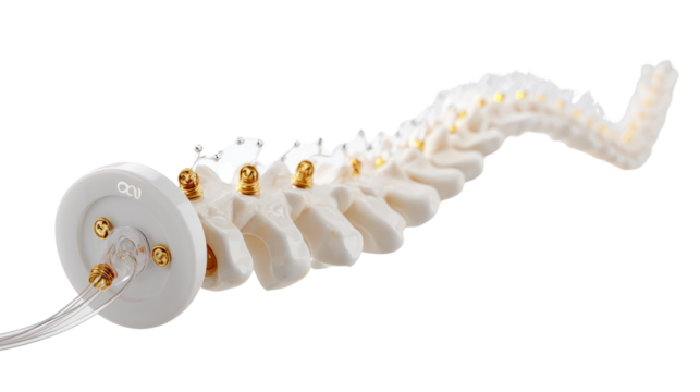 High-tech spinal cord stimulator for pain relief, isolated on a Transparent background, PNG file.