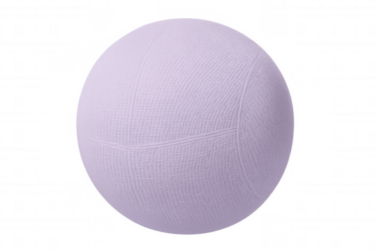 Purple volleyball spinning dynamically, digital 3d rendering revealing detailed surface texture against clean transparent backdrop, showcasing spherical design