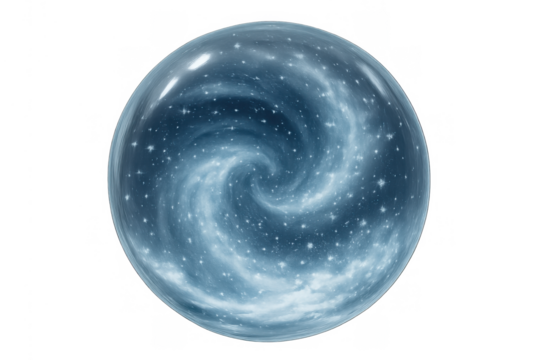 Crystal ball containing spinning spiral galaxy, stars, nebula, deep space, cosmos and universe, transparent background