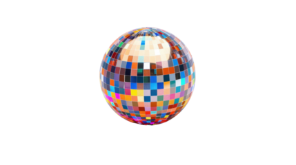Shiny disco balls in different sizes casting light reflections, isolated on white background.  PNG transparent.