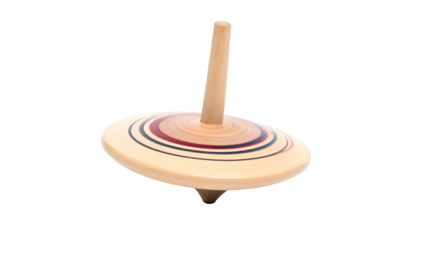 Wooden spinning top toy with colorful stripes   isolated on transparent background