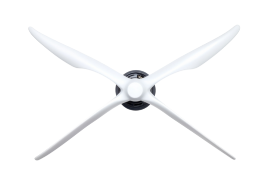 Aerial wind turbine blades spinning elegantly against a bright background on a calm, sunny day isolated on transparent background