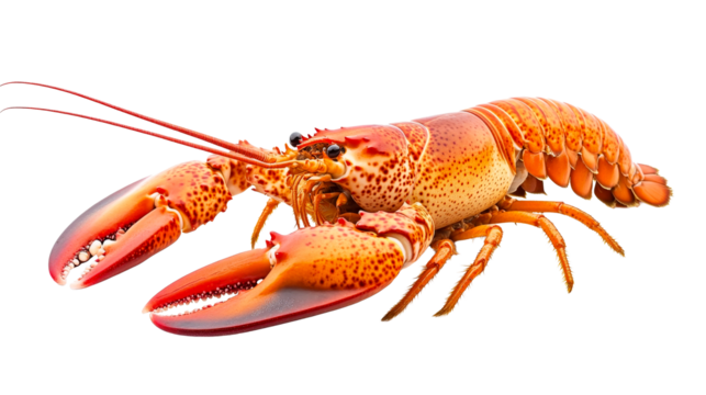 Orange spiny lobster, detailed clawed seafood. cut out transparent
