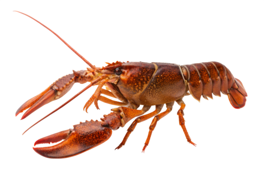 Lobster side crawling close-up isolated on transparent background