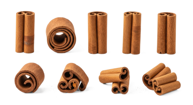 Cinnamon sticks arranged in a spiral pattern on a png transparent