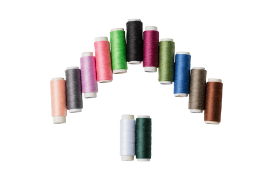 Stylized arrow in any direction, made of coils of multi-colored threads. Transparent background.