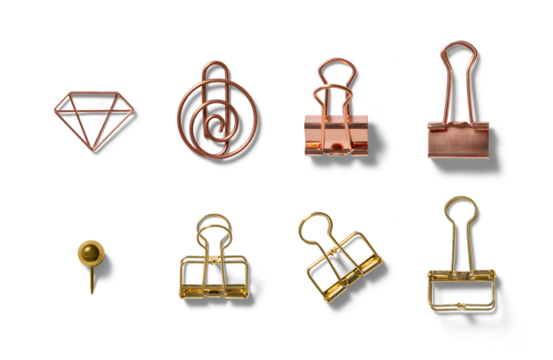 Open Yellow Notebook with a Paper Clip Holding Pages. Isolated on a Transparent Background
