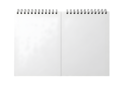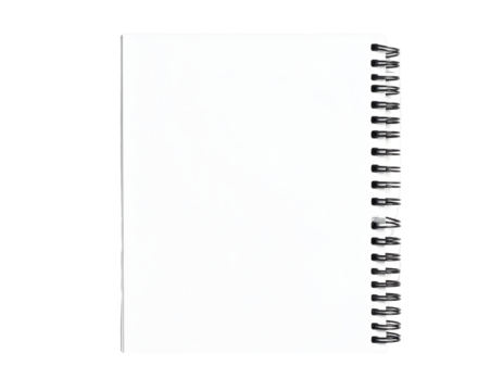 White vertical closed notebook with metal spiral binder isolated on transparent background, template for business mock up and presentation design