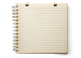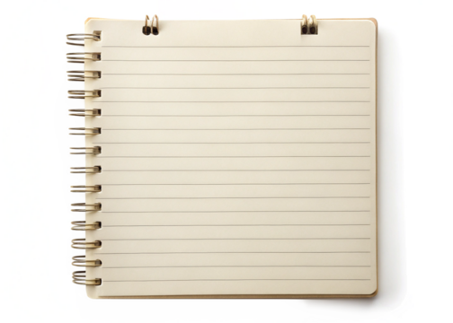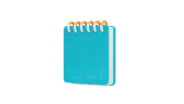 Top Spiral Notebook with Blank White Pages, isolated on a transparent background.
