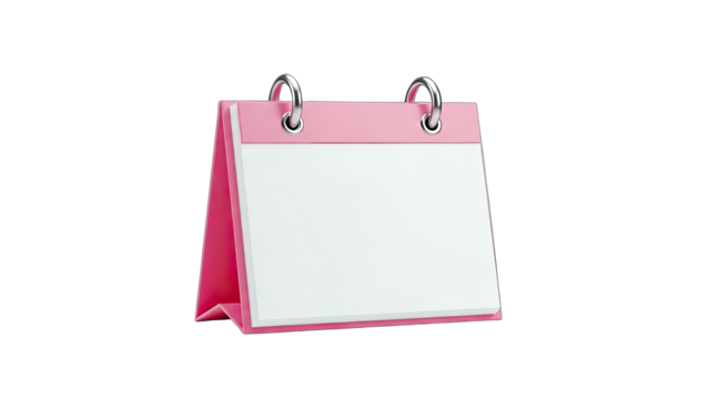 3D Blank pink desk calendar with silver spiral binding on transparent background