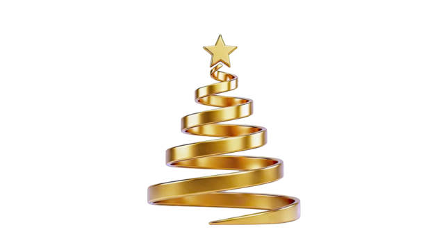 Golden spiral christmas tree illustration on transparent background