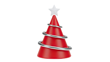 Red spiral Christmas tree with star isolated PNG, modern holiday decoration on transparent background for festive design projects