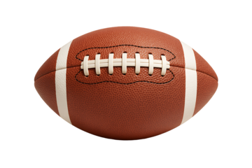 Professional american football ball with brown pebbled leather texture and white stitching for sports competitive games isolated on transparent background