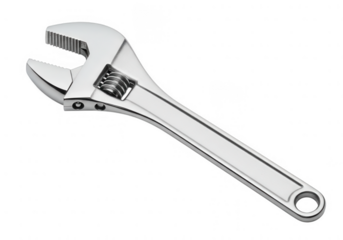 Shiny adjustable metal wrench tool equipment isolated on transparent background