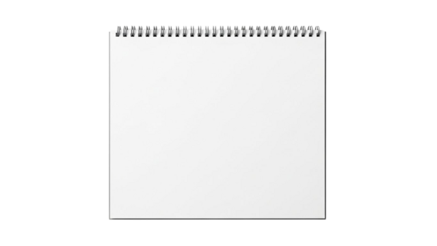 A spiral notebook from top view with empty white cover